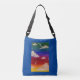 Crossbody-Tasche mit Bild eines Regenbogenfarbenen Himmels mit Wolken und Sternen. Originale Kunststoffe sind Acrylate auf Leinwand-Pappe.