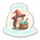 Magic Starts Klein - Niedlicher Igel Sticker - Sogar die beststen Zauber beginnen mit einem Single Tropfen! Dieser süße Aufkleber ist mit einem Baby-Igel in einem spitz-roten Zauberhut ausgestattet, der glücklicherweise einen leuchtend grünen Tank braut. Gerahmt von der motivierend Phrase "Magic Starts Small" erinnert uns dieses Design daran, dass große Dinge aus kleinen Anfängen kommen. Eine perfekte Ergänzung zu Laptops, Wasserflaschen, Zeitschriften und vielem mehr - besonders für Träumer, Macher und Anhänger alltäglicher Magie.