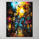 Treten Sie ein in eine mystische Welt mit dieser lebendigen und surrealen Darstellung einer magischen Gasse, beleuchtet von leuchtenden Laternen und voller geheimnisvoller Figuren. Die ausdrucksvollen Pinselstriche und die kontrastreichen Neontöne schaffen eine eindrucksvolle traumhafte Atmosphäre, in der sich in jeder Ecke versteckte Geschichten und Zauber tummeln. Dieses Kunstwerk ist perfekt für Fans von dunkler Fantasie, gotischer Ästhetik und mystischer Stadtlandschaften geeignet und erfasst das Wesen eines anderen Weltmarktes voller Wunder.