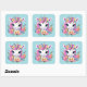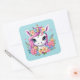 Magical Baby Unicorn mit Blume Quadratischer Aufkleber