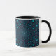 Kosmische mysteriöse Mandala mit leuchtend hellblauem Licht auf einem schwarzen Hintergrund.