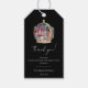 Magical Essential Oils Apothecary Yoga Crystals Kunde Vielen Dank Geschenketiketten mit schwarzem Hintergrund. Weiße Aquarellkunst aus Zauberschrank mit ätherischen Ölen, Zauberflaschen, Kristallen, Blume, Halbmond und Sternen. Ideal für ganzheitliche Heiler, Massagetherapeuten, Reiki-Praktiker, Yoga-Instruktoren und alle im spirituellen und metaphysischen Bereich. Fügen Sie Ihrem Unternehmen, Ihrer Klinik oder Ihrem Wellness-Center eine magische Touch hinzu. In unserem Zazzle-Shop finden Sie passende Vorräte. *Text bereit für Ihre Informationen.