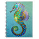 Zauberhaftes vergoldetes Seepferd in prächtigen Juweliertönen, Türkis, Aqua, Grün, Purpur mit goldfarbenen Detailskalen und Kanten. Spaß Notebook, Zeitschrift und Begleiter für Ozeanliebhaber. Siehe passendes Zubehör und Spielkarten. Perfektes Geschenk für Ozeanliebhaber.