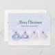 Urlaubskarte mit einem magischen Weihnachtsdesign. Weihnachtsbaumdekorationen, die auf einem weißen Schnee sitzen. Der Hintergrund hat ein weißes Bügelmuster (verschwommenes Licht) mit fallenden Schneeflocken. Fängt das Wunder und die Magie von Weihnachten perfekt ein.