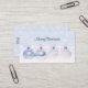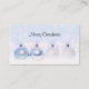 Visitenkarten mit einem magischen Weihnachtsdesign. Weihnachtsbaumdekorationen, die auf einem weißen Schnee sitzen. Der Hintergrund hat ein weißes Bügelmuster (verschwommenes Licht) mit fallenden Schneeflocken. Fängt das Wunder und die Magie von Weihnachten perfekt ein.