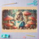 Soft pastels, gentle shadows, and glowing mushrooms surround Alice in this dreamy Wonderland scene. The light palette makes it perfect for romantic or vintage-inspired crafts. Great for wrapping, scrapbooking, or keepsake décor. This sweet moment feels like a memory from a favorite story. Soft enough for subtle magic, bright enough to catch the eye. Explore more whimsical fantasy designs in my Alice In Wonderland tissue paper collection!