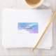 Adressieren Sie Etiketten mit einem weichen und schönen Hintergrundbild. Pastel Blues und rosa Wolken mit einem magischen Regenbogen.
