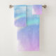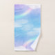 Handtuch Set mit einem weichen und schönen Hintergrund. Pastel Blues und rosa Wolken mit einem magischen Regenbogen.