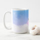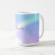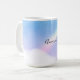Eine Tasse mit einem weichen und hübschen Hintergrundbild. Pastel Blues und rosa Wolken mit einem magischen Regenbogen.