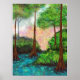 Magical trees, pond and colorful sky fantasy painting. Bright colors and fun for anyone who loves fairy tale, fantasy forests and ponds or lakes.