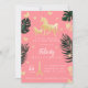Schönes niedliches magisches Einhorn, Herz, Blume, Schmetterlinge und die Paris Eiffel Tower Imitate goldenes Muster Mädchen Dusche Einladung. Weich rosa und Imitate goldenes Einhornmuster schafft ein magisches gürtelhaftes Aussehen mit tropischen Palmenbaum-Blätter. Auf der Rückseite sind die gleichen Imitate goldfarbene, magische Einhornmuster auf weißem Hintergrund. Alle Illustrationen in dieser wunderschönen, zauberhaften Einhorn-Mädchen-Dusche Einladung enthalten sind handgezeichnet Original-Kunstwerke von Moodthology. Sie können die Textgröße, Textfarbe, Schriftart und Layout für Ihre individuelle Designvorliebe anpassen.