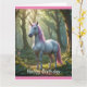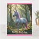 Diese Geburtstagskarte bietet ein Einhorn in einem magischen Wald.