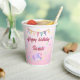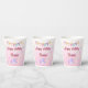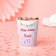 Diese bezaubernde Paper Cups mit einem traumhaft rosa Hintergrund, mit skurrilen Elementen geschmückt, perfekt für eine magische Geburtstagsfeier. Das Design präsentiert ein schönes geflügeltes Einhorn mit lila und blauer Mane und Flügeln, umgeben von bunten Pastellstern, die über den Teller verteilt sind. Oben ist ein festliches Banner mit mehrfarbigen dreieckigen Fahnen. Der Text "Happy Birthday" und der Name "Sarah" sind in einem eleganten burgundischen Script-Schriftart verfasst.