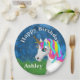 Fügen Sie Ihrem Party mit diesen Tellern des Magical Unicorn Birthday Paper Glanz! Das Design ist mit einem niedlichen, weißen Einhorn und einem regenbogenfarbenen Mund und Schwanz in kräftigen Farbtönen wie Rosa, lila, Türkis und Gelb gestaltet und mit einem goldenen Hupen und zauberhaften Glitzern versehen. Perfekt für Geburtstagskuchen, Snacks und festlichen Spaß! Original Art von Suki's - Copyright