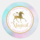 Feiern Sie den Geburtstag Ihres kleinen Mädchens mit diesem farbenfrohen, einzigartigen Einhornaufkleber. Aquarellfarbener Hintergrund in aquamarinen, rosa und lila Tönen. Mit einem goldenen Einhorn verkörpert. Einfach zu personalisieren mit benutzerdefinierten Optionen. Verwenden Sie die Schaltfläche "Anpassen", um das Produkt anzupassen oder Text hinzuzufügen.
