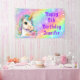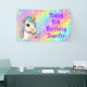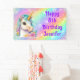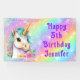 Dieses spaßige Happy Birthday Banner besticht durch ein magisches Unicorn mit Aqua-Mane und goldenem Horn vor Regenbogenuntergrund. Entworfen in Purpur, Lavendel und Pinks mit glitzernden Glitzern und personalisiert mit Ihrem Namen. Ideal für dieses magische Einhornspiel-Party!