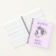 Babydusche Gästebuch - Spiralheft mit eleganter Aquarellbild mit einer Aquarellmama und Babydusche mit lila Mane und Vorhaut. Die Blume ist von zarten, orangefarbenen Blüten umgeben.