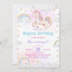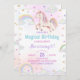 Set die Bühne für ein magisches Fest mit unserer Magical Unicorn Rainbow Birthday Einladung! Mit einem bezaubernden Einhorn, umgeben von flauschigen Wolken, lebhaften Regenbögen und funkelnden Sternen, fasziniert dieses skurrile Design das Wunder eines märchenhaften Party. Ideal für den Geburtstag der Kinder, kombiniert es sanfte Pastelltöne mit zauberhaften Details, um die Gäste zu einem unvergesslichen Erlebnis einzuladen.