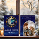 Magical Winter wünscht Celestial Moon Weihnachts Foto Weihnachtskarte - Eine einzigartige Weihnachtskarte mit einem himmlischen Mondthema. Die Vintage Buntglaskonstruktion mit einem halbmondförmigen weißen Mond und hellgelben Sternen am glitzernden Winternachthimmel. Ideal für Menschen, die himmlische Themen, Astronomie oder Astrologie-Weihnachtskarten, planetarische oder planetarische Weihnachtskarten oder auch Hexenkarten und magische Weihnachtskarten genießen. Passen Sie diese bearbeitbare Weihnachtskartenvorlage mit Ihrem eigenen Foto und Ihrer eigenen Nachricht im Hintergrund an. Erhältlich als digitaler Download, perfekt für Weihnachtskarten in letzter Minute oder für Öko-freundliche Option.