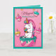Diese zauberhafte Geburtstagskarte für Mädchen mit einem farbenfrohen kleinen Einhorn mit einer Eiscreme, die auf einem riesigen Kuchen sitzt. Vier zusätzliche Kuchen und Sterne auf rosa Farbverlauf mit jade optischen Quadraten grenzen. Innen links von Karte hat ein ähnliches Hintergrundbild mit einem gestanzten Einhorn. Innen rechts ähnliches Hintergrundbild mit vorgeschriebener Nachricht. Diese Geburtstagskarte für Mädchen ist sehr anpassbar. Sie können diese Karte mit Ihren eigenen Bildern und Texten personalisieren oder nach Belieben versenden.