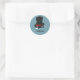 Fügen Sie einen Namen oder einen anderen Text hinzu, um personalisierte Aufkleber zu erstellen, die für Zauberer jeden Alters geeignet sind. Dieser runde Aufkleber zeigt einen Zauberhut und ein Zauberstab-Set mit einem blauen Hintergrund und einem Namen unter der Grafik.