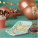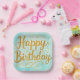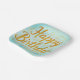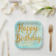 Diese Party-Papier-Teller verfügen über einen whimsical Aquarell fröhlichen Geburtstagsdruck in Aquablau und Gold.