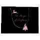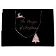 Modernes Schwarz-Rosa-Design mit Skript-Schriftart ein Rentier und Baum.