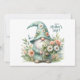 Mit dieser bezaubernden Urlaubskarte mit einem süßen aquamarinen Zwerg, der ein lebhaftes Bouquet hält, umgeben von zarten Gängen und einem flatternden blauen Schmetterling, verleiht dieses Design Ihren herzlichen und fröhlichen Botschaften eine charmante Touch. Der elegante Text "Happy Mother’s Day!" vervollständigt die reizvollen ästhetischen und dekorativen Akzente, die Mama im Stil feiern.