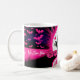 Diese rosa Valentinstag Kaffee-Tasse besticht durch ein charmantes und romantisches Design. Eine Hexe Silhouette mit fließendem Haar und ein spitzer Hut reitet einen Besen gegen einen glühenden Vollmond. Die Szene wird mit lebhaften rosa Tönen, Herzen und blühenden Rose zum Leben erweckt, die eine skurrile und magische Touch hinzufügen. Fliegende Fledermäuse im Nachthimmel verstärken das mystische Erscheinungsbild, während der Text "Wir Liebe dich" und der personalisierte Name "Jennifer" die herzliche Botschaft vervollständigen. Dieses Design umschließt die Tasse, und sowohl der Name als auch der Text können so angepasst werden, dass sie einzigartig für Sie sind. Ideal zum Geschenken am Valentinstag!