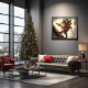 In diesem Bild wird eine festliche Szene dargestellt, die einen fröhlichen Weihnachtsmann mit einer Fülle von Geschenken zeigt. Die Figur des Weihnachtsmannes wird in der Mitte deutlich vorgestellt, in seinem Anzug in Rot und Weiß mit einem flauschigen Hut gekleidet. Er ist voller Geschenke, die Freude ausstrahlen und den Feiertagsjubeln ausstrahlen. Die Gesamtkomposition erinnert an eine warme und gemütliche Urlaubsatmosphäre, die sich perfekt für den Weihnachtsgeist eignet