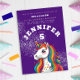 Begleiten Sie uns, um einen magischen 5. Geburtstag zu feiern! Unsere lila Einladung ist ein bezauberndes, weißes Einhorn mit Regenbogenhaaren, das sich in fröhlicher Weise inmitten von Fake-glänzenden Sternen ausbreitet. Passen Sie alle Daten in fett weißem Schriftart an, einschließlich Datum, Uhrzeit, Ort und UAWG. Schimmernde Schwimmer um die Welt herum, um eine zusätzliche Touch von Magie hinzuzufügen. Dieses bezaubernde, individuell gestaltbare Design ist perfekt für eine unvergessliche Geburtstagsfeier mit einem unvergesslichen Thema. Sichern Sie sich ein zauberhaftes und zauberhaftes Fest für Ihr Kleines, das unvergessliche Erinnerungen schafft!