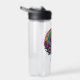 Farbenfrohe Regenbogen-Einhorn und Blume mit einem Regenbogen-Hintergrund personalisierte Wasserflasche.