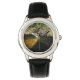 Uhr, Klassische Damenuhr mit schwarzen Lederarmband