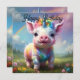 Mitten auf einer blühenden Wiese mit Wildblumen verziert ein farbenprächtiges Baby Frosch fröhlich unter dem Bogen eines strahlenden Regenbogens, der sich über den Himmel erstreckt. Der weiche, würfelige Körper des Ferkels ist in Pastellpinken und -violetten, goldfarbenen und blauen Farbtupfern, die das Sonnenlicht erhellen, verziert. Über seinem winzigen Kopf ist ein spiraliertes Horn, zart und leuchtend mit einem blauen, irisierenden Licht, als ob es das Wesen der Magie in sich trägt.