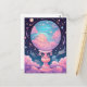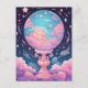 Treten Sie ein in eine Welt der Träume mit dieser skurrilen Postkarte mit einer glühenden Kristallkugel, umgeben von pastellfarbenen Wolken und Sternen. Ideal, um Freunde und Lieben magische Wünsche zu schicken.