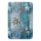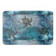 Auf dieser traumhaft blauen Badematte sind Blautöne mit glänzenden und glänzenden Overlays, die skurrile moderne Kunst schaffen, zusammen mit einer schwarzen, stämmigen Meeresschildkröte mit goldglänzenden Tropfen oben und unten für mehr Weisheit.