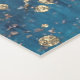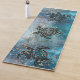 Auf dieser traumhaften blauen Yoga-Matte sind blaue Farbenstriche mit schimmernden und glitzernden Overlays, die skurrile, magische moderne Kunst schaffen, zusammen mit einer schwarzen, stämmigen Meeresschildkröte mit goldglatter Tropfen auf dem oberen und unteren Rand für mehr Weisheit.