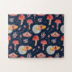 Magische Motte und Pilzmuster. Waldnacht Puzzle