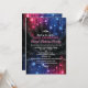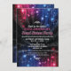 Rosa, lila und blau leuchtende Neonleuchten am oberen und unteren Ende dieser Party Einladung verleihen dem Hotel eine Diskothek, die zu einem unvergesslichen Sweet 16 Party macht. Random-Lichter leuchten um den schwarzen Hintergrund und der Veranstaltungsname und andere Akzente zeichnen sich durch ein Chrom-Look-Finish aus. Feine Grunge-Elemente vervollständigen das trendige Aussehen. Verfügbar mit passenden Produkten.