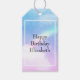 Geschenke Tags mit einem weichen und hübschen Hintergrundbild. Pastel Blues und rosa Wolken mit einem magischen Regenbogen.
