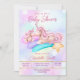 Magischer Regenbogen niedlich rosa Einhornbaby und eingetönte Mutter Baby Dusche Einladung Vorlage.