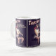 Diese Tasse bietet ein klassisches Zauberdesign mit einer Update-Drehung. Das Design stammt aus den magischen Gräbern des späten 19./frühen 20. Jahrhunderts, wie Kellar und Thurston, und ist mit ähnlichen Schriftart, Farben und dem klassischen Teufel ausgestattet, der auf die Schulter kommt. Dieser moderne Zauberer geht an Thirstin, und statt sich tatsächlich ein wahres vaudevillisches Publikum zu unterhalten, kämpft er um Aufmerksamkeit für moderne soziale Medien und zeigt immer, ständig "Durst"um Aufmerksamkeit.