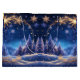 Die Weihnachtszeit - eine Zeit voller Staunen, Freude, Hoffnung, Erwartungen und Überraschungen. Diese Geschenktasche enthält eine goldene Schneeflocke, die im blauen Nachthimmel über dem Winterwald wirbeln. Wunderschöne Geschenktasche für alle!