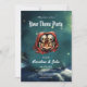 Magische Wintermomente, zwei Skelette, die bei Kerzenlicht an einer Winternacht gelesen werden. Zwei Skelette kuscheln liebevoll unter einer roten Decke, während sie zusammen ein Buch lesen. Eine kleine Kerze sorgt für warmes, diffuses Licht, was die Szene gemütlich und ein wenig geheimnisvoll macht. Im Hintergrund leuchten Sterne und Schneeflocken im dunklen Himmel, während Schnee auf dem Boden und an der Decke liegt. Die Winterlandschaft mit Kiefern schafft eine ruhige, bezaubernde Atmosphäre voller Wärme und Magie.