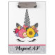 Zauberhaftes Einhorn mit silberfarbenem Glitzer-Horn und einer Krone farbiger Wildblumen mit dem Satz für Sie zu personalisieren - Magical AF. Diese Zwischenablage soll Ihnen einen einzigartigen, mutigen Flair in Ihre täglichen Routinen bringen. Unser hübsches Wildblume-Design auf Weiß ist auf der Rückseite. Die unkonventionellen und mit Büroartikeln und/oder Schulmaterial, die Ihre Individualität widerspiegeln, umsetzen.