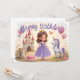 Eine kleine Prinzessin feiert ihren besonderen Tag mit einem Einhorn, einem rosa Kuchen und fröhlichen Ballons auf einer traumhaften Märchenwiese, wo magische Glitzern in jeder Ecke und Glückseligkeit die Luft wie Sternenstaub füllen
