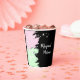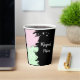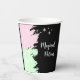Magischer Kindergeburtstag mit Sternen und Blasen, die aus einem sternförmigen Zauberstab kommen, vor einem hellrosa und mintgrünen Hintergrund.