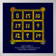 Die Zahlen werden so platziert, dass die Summe jeder Zeile (waagerechter Sinn), jeder Spalte (vertikaler Sinn) und jeder Diagonale des "Magischen Quadrats" das Ergebnis immer 33 ist. Idee und Berechnung von Alessandro Lumini , Design und Modellierung von Bulgan Lumini. Teil von Serie Hyper Talismans.