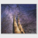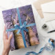 Dieses Design zeigt ein schönes Bild von zwei hohen Bäumen, die sich in den Himmel erheben, umgeben von anderen Bäumen in einem Wald. Die Szene ist das Set in der Nacht, wenn alles aussieht besonders magisch und bezaubernd. Es gibt eine Vogelherde, die über der Luft liegt. Der Himmel besteht aus einer wunderschönen Mischung aus lila und blau; er ist mit hellen weißen Sternen übersät.