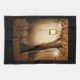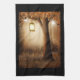 Ein Küchentuch mit einer skurrilen, bezaubernden Illustration in Braun- und Gelbtönen. Ein magischer mystischer Wald mit einem großen Baum, der eine alte Laterne hält. Luftlichter tanzen überall herum. Ein bezauberndes, wunderbares Design.